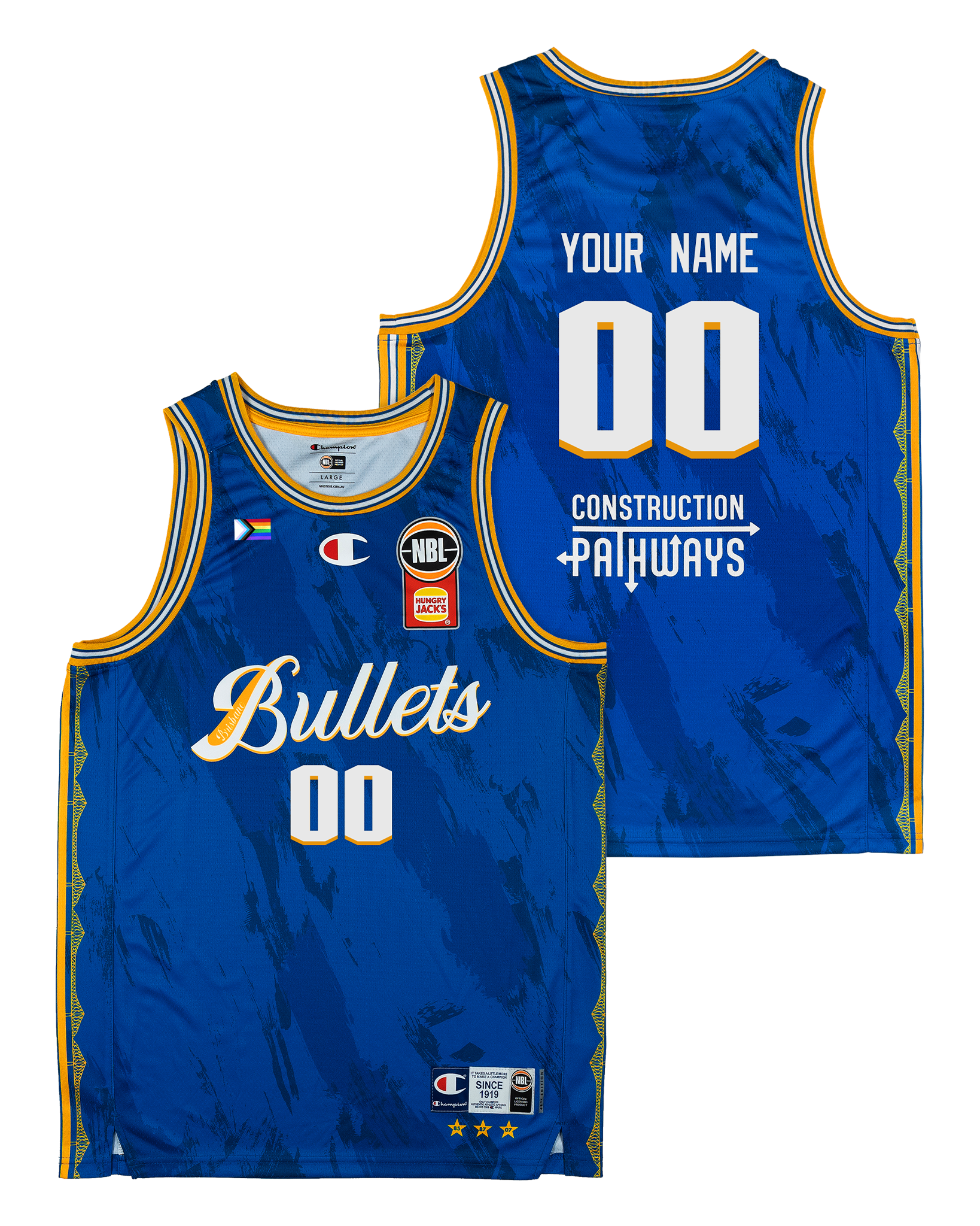 Celebrate Pride on and off the court with the Brisbane Bullets 25/26 Pride Round Jersey - Personalised. In partnership with Champion, the Hungry Jack’s NBL continues to champion inclusivity and diversity within the LGBTQ+ community. This jersey embodies the belief that sport is for everyone—welcoming fans and athletes alike, no matter who they are. Wear it proudly to show your support for equality, representation, and the power of basketball to bring communities together.